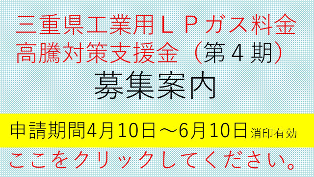 04/06 三重県工業用LPガス料金高騰対策支援金(第4期)について