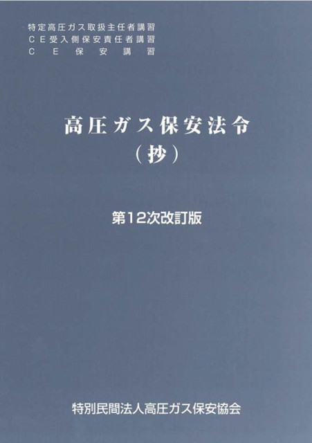特定高圧ガス取扱主任者講習・受入側保安責任者講習で使用する高圧ガス保安法令(抄)(第12次改訂版)が2月24日に発行されました。